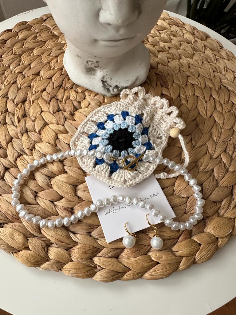 Kleiner Beutel zum Verstauen von diversen Gegenständen. Ideal zum Verstauen und Verschenken von Schmuck geeignet. 🧿🤍💙
